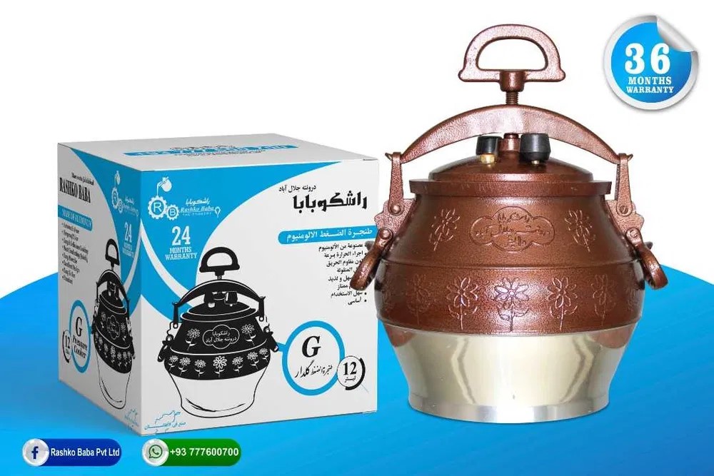 Afgański kazan jest odlewany z wytrzymałego stopu aluminium. Działa jak tradycyjny szybkowar z tą różnicą, że ma grubsze dno i ściany oraz zaokrąglony kształt dzięki czemu równo rozprowadza temperaturę wewnątrz. Zamknięta pokrywa doprowadza do wzrostu ciśnienia oraz temperatury do poziomu wrzenia, które przygotują potrawę w bardzo krótkim czasie.